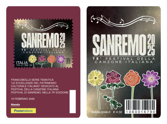 Emissione di un francobollo ordinario appartenente alla serie tematica “le Eccellenze del Patrimonio culturale italiano” dedicato al Festival della Canzone italiana – Festival di Sanremo, nella 75ª edizione.